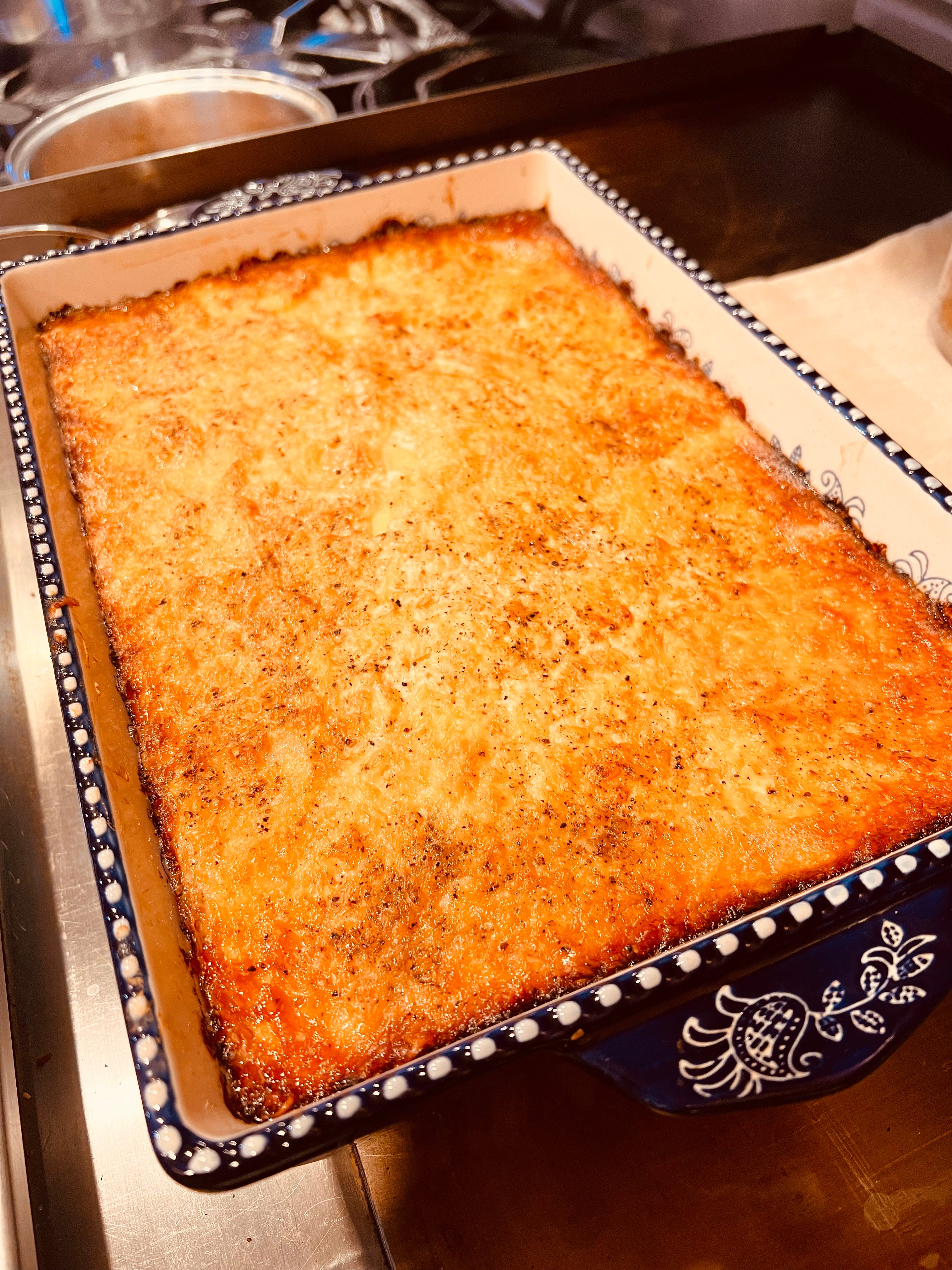 “Au gratin” sounds fancier than it is. In French, it just means with a crust—anything topped with breadcrumbs, cheese, or both, and baked until the top browns. Technically, to be truly au gratin, there should be a shallow dish, a hot oven, and enough dairy to qualify as a moral dilemma. The French, of course, keep it tidy: cream, Gruyère, restraint. But over time, Americans have taken “au gratin” as permission to drown anything starchy in whatever’s in the fridge and call it comfort food. My version lives somewhere between gratin dauphinois and civil disobedience—no roux, no breadcrumbs, no apologies. By French standards, it’s probably a misdemeanor. By mine, it’s dinner.